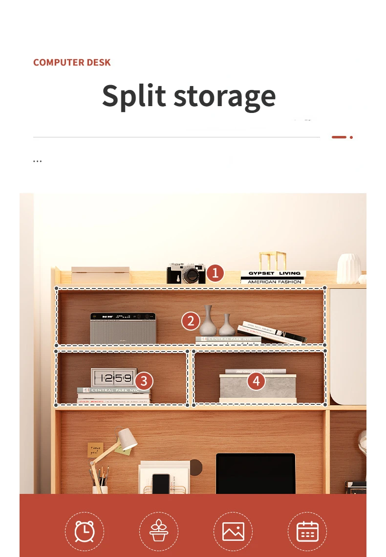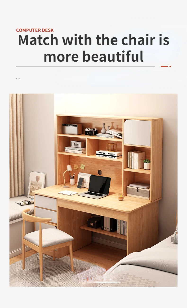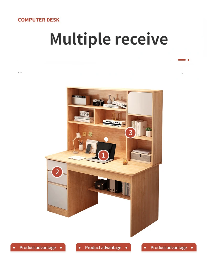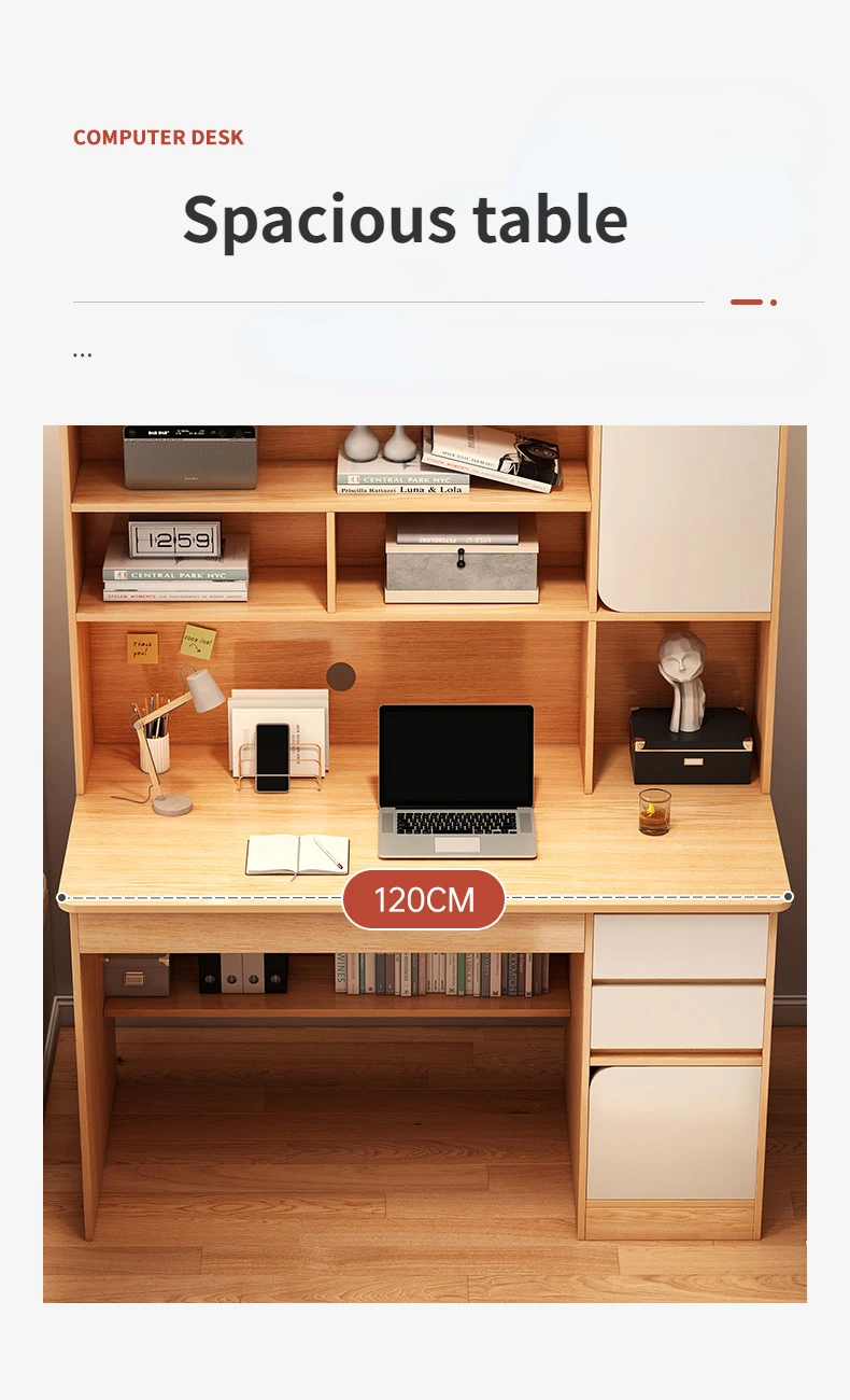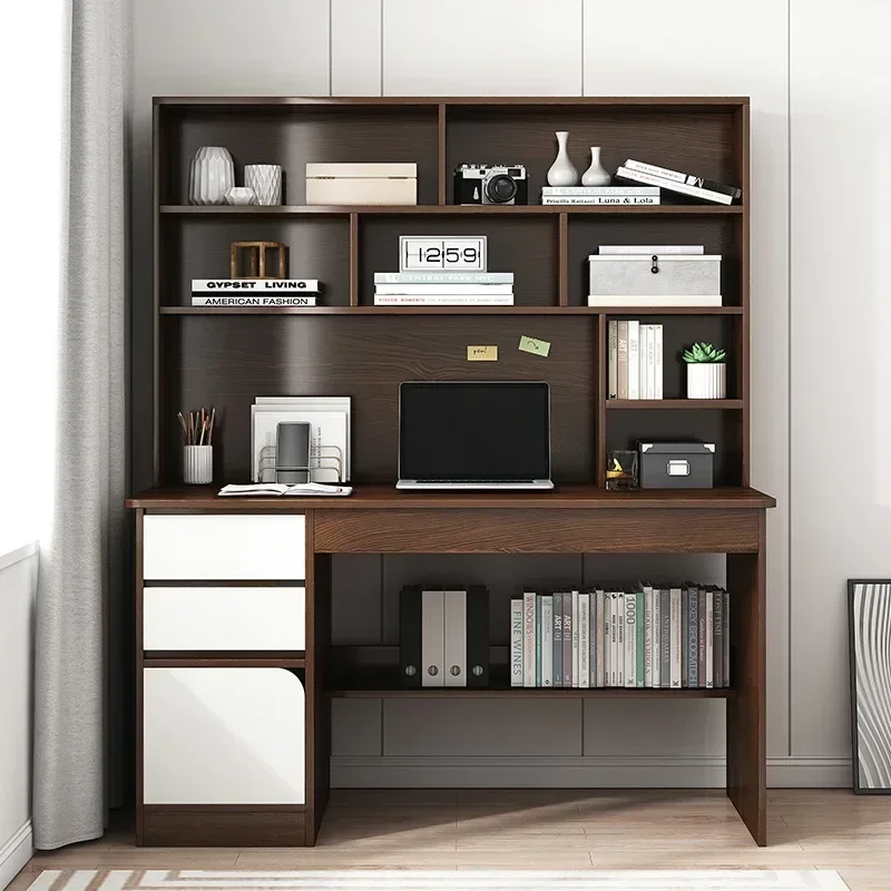 Escritorio moderno para ordenador con estantería de almacenamiento para oficina